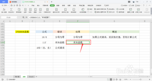 选中一个单位格,在菜单栏的公式下,打开逻辑下拉框,点击里面的IFERROR函数。