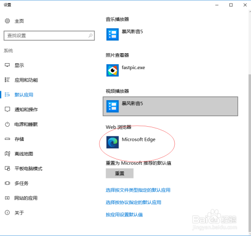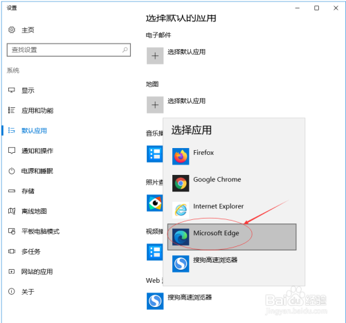 在浏览器应用选择框中,双击“Microsoft Edge”,如下图所示: