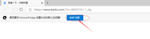 双击打开Edge浏览器,首先弹出的是进行默认浏览器设置,点击“设置”,如下图所示: