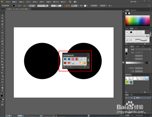 点击【图形样式库菜单】-【按钮和翻转结果】,将按钮和翻转结果图案样式东西栏调出;