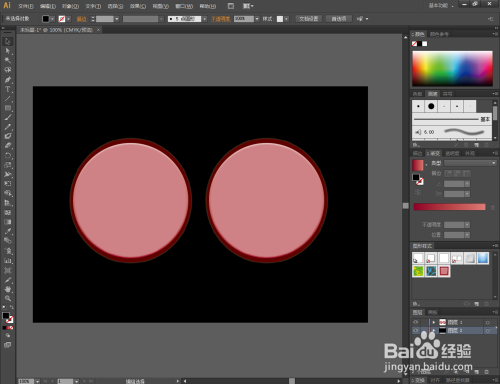 选中圆形图案,将红色凸出按钮图样附加上去即可。