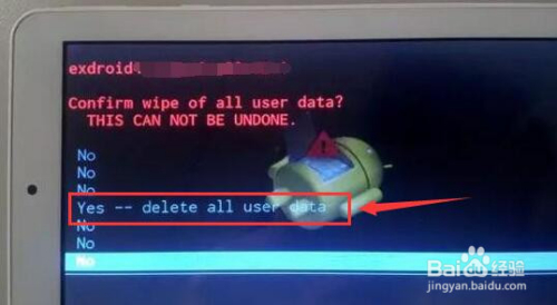 3. 利用菜单选择清理用户数据和重设为出厂设置;