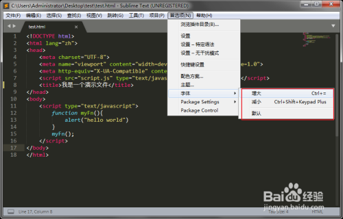按住键盘上的:Ctrl键,并滚动鼠标滚轮,来设置字体的小