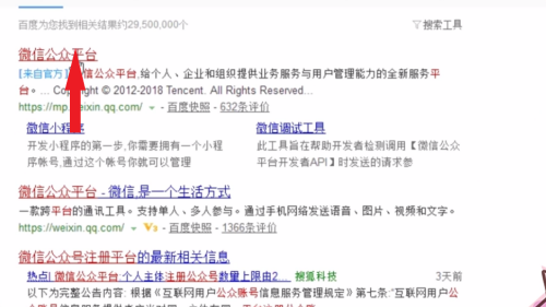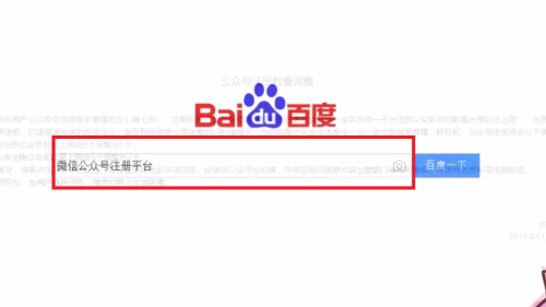 - 1打开“百度”,在搜刮栏中输入“微信公家号注册平台”。