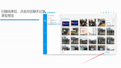 - 5用数据线毗连手机和电脑,选摘要恢复的数据,点击“起头扫描”。