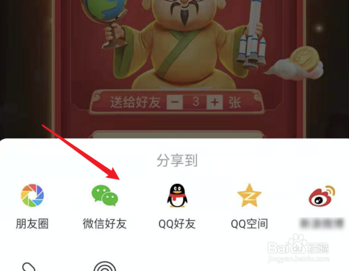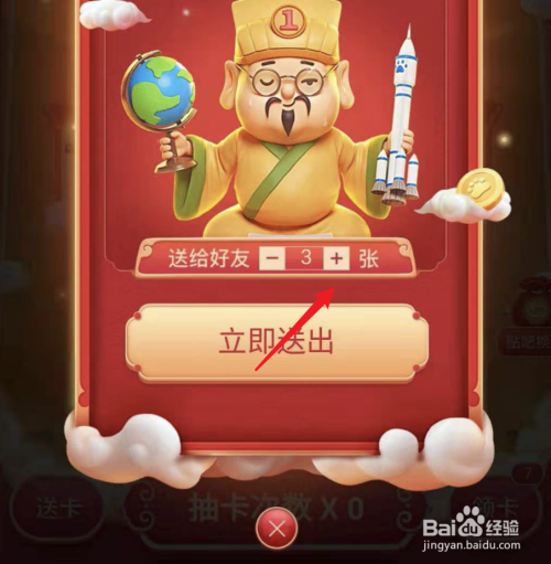 点击打开一张要送人的卡,在弹出的选项窗口上,点击送出按钮。