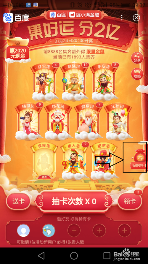 当您有多余的卡片,您可以点击右侧的“贴吧换卡”,换取您所需要的卡片。