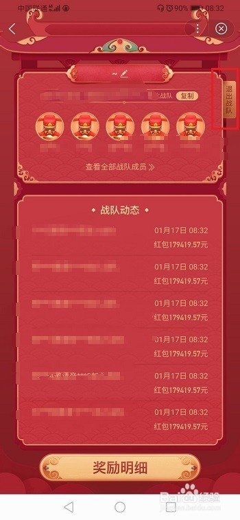 第五步可以看到当作功退出团聚红包战队了,我们可以从头插手一个战队,如下图所示: