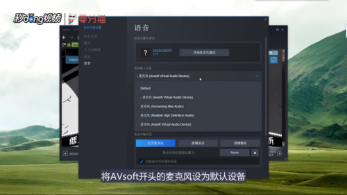 - 9将变声专家的虚拟驱动AVsoft设置为默认设备。