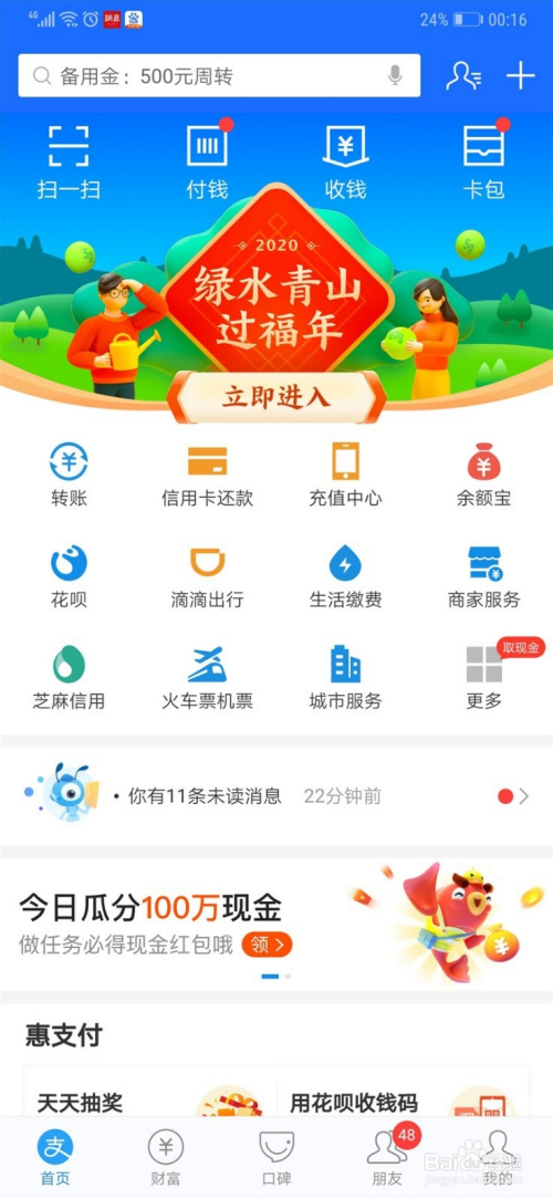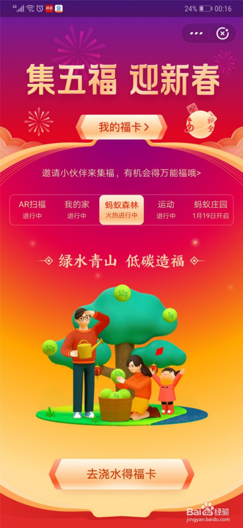 我们打开手机支付宝,进入到我们的五福活动界面。