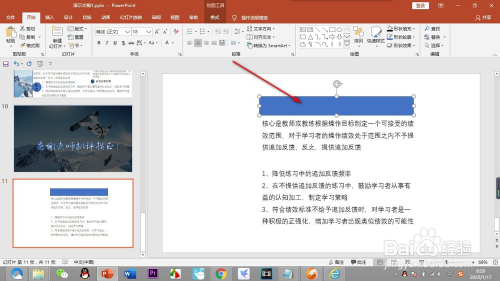 我们先打开一个纯文字的幻灯片,点击上方的外形按钮,选择一个矩形外形东西。
