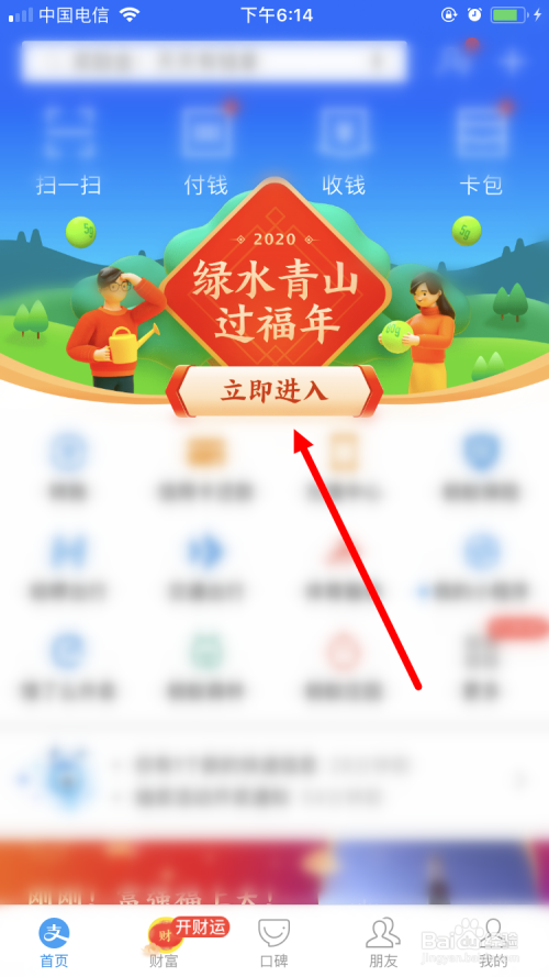 1、在支付宝首页面点击【绿水青山过福年】;