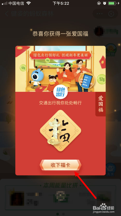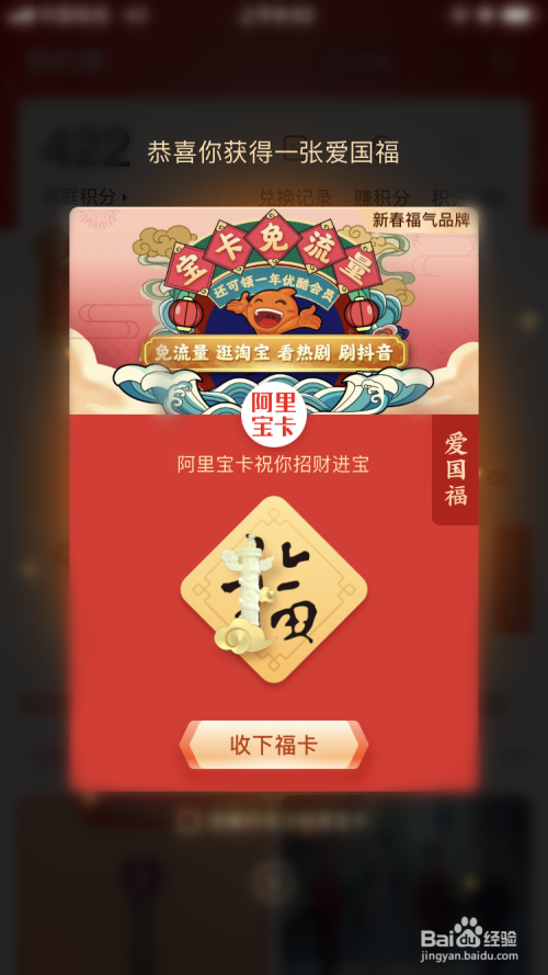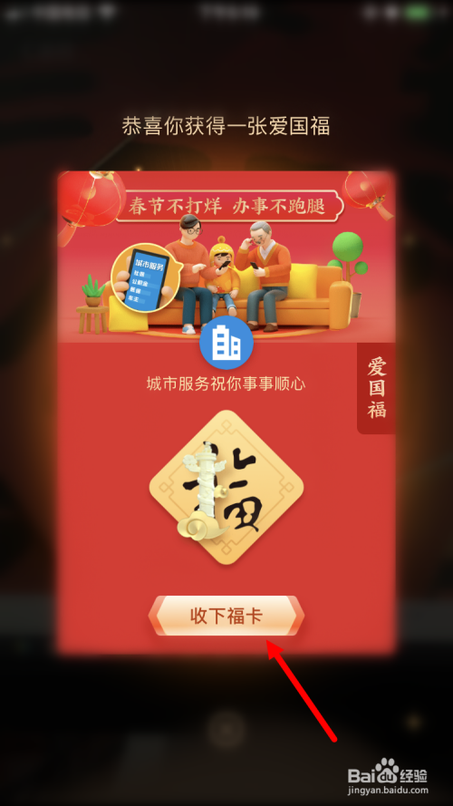 获得一张爱国福。点击【收下福卡】。