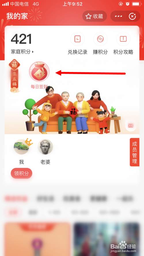 在【我的家】页面里,点击【每日签到】的福袋。
