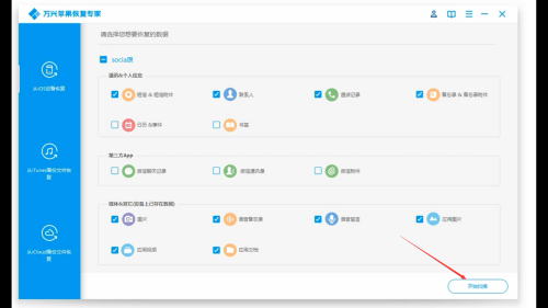 6. 6用数据线毗连电脑和手机,选摘要恢复的数据文件,点击“起头扫描”。