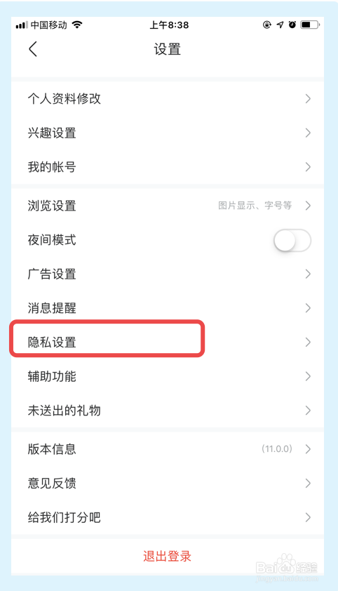 在接下来的界面, 点击【隐私设置】选项。