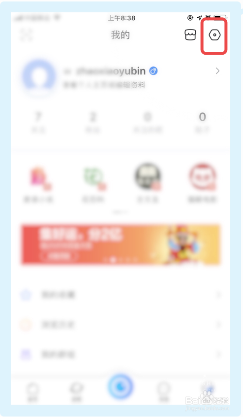 3.在【我的】界面,点击右上角的设置菜单;