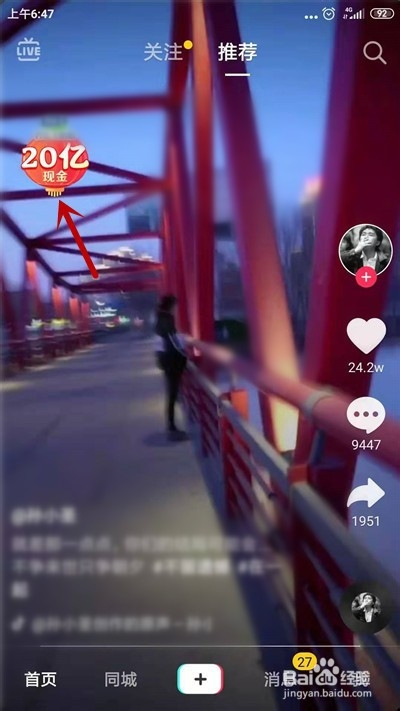 进入抖音本家儿界面,点击左上角【20亿现金】。