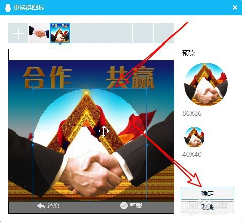 这时就会打开群资料点窜页面,点击添加头像的图标。