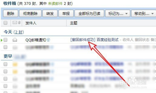 打开收件箱可以看到邮件撤回当作功的提醒邮件。