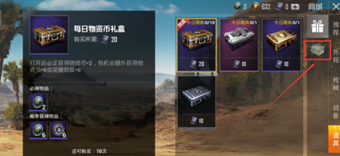 3、道具界面中选择第二个宝箱的图案。