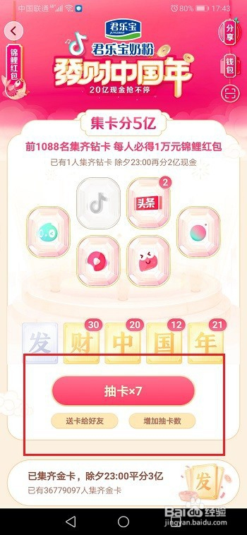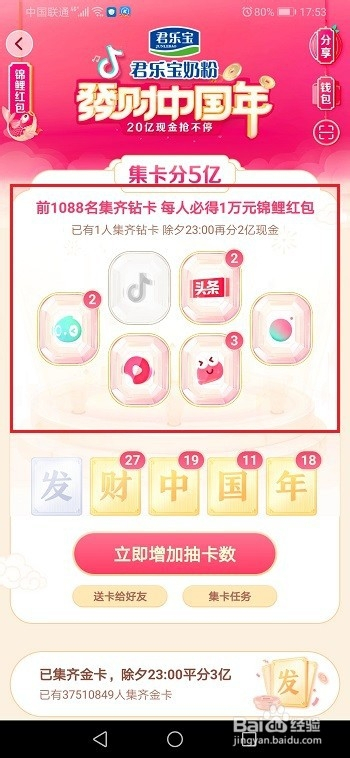第二步抖音6种钻卡,只有一种钻卡比力难获得就是抖音钻卡,抖音钻卡前期会和发卡一样,慢慢的放出来,所以获得的人会很少,如下图所示: