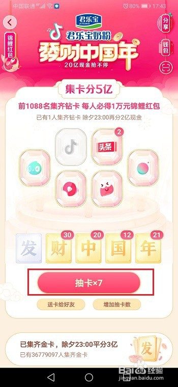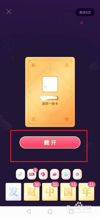 第一步我们集齐了抖音的发家中国年五张卡之后,可以再去集齐抖音的六张钻卡,此中抖音钻卡最难获得,半斤八两于以前的发卡,如下图所示: