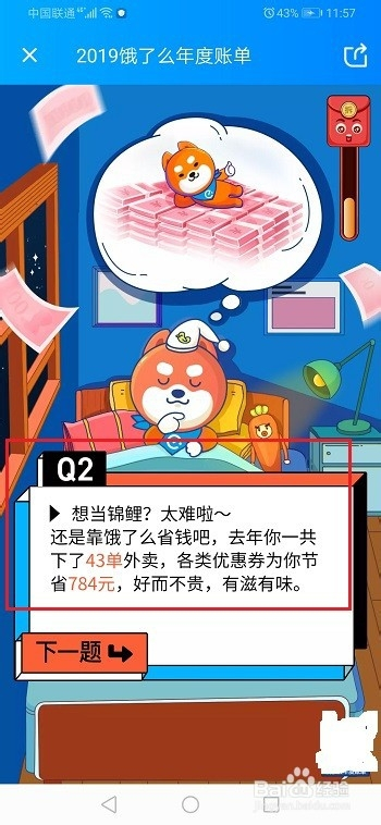 第四步也可以看到2019年在饿了么下了几多单外卖,节流了几多钱,如下图所示: