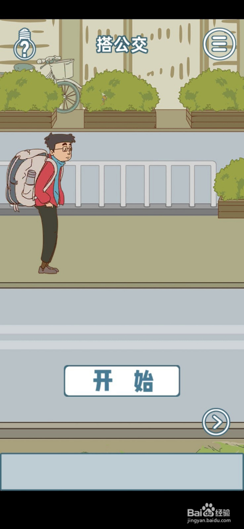 以第一个关卡为例,我们从家里出来,筹办回老家。需要的第一步就是搭上公交车,若是不操作直接点击起头。