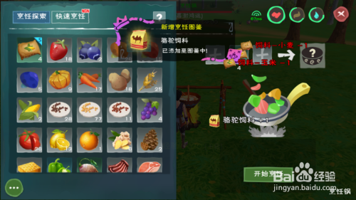 打开烹调锅,然后将玉米饲料和小麦饲料一路煮获得骆驼饲料。顾名思义,骆驼饲料只有骆驼才会吃,多喂几回骆驼就顺服了,装上鞍就可以骑了。