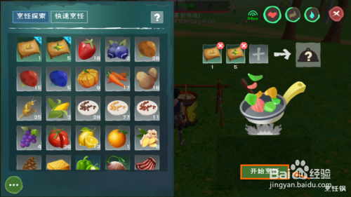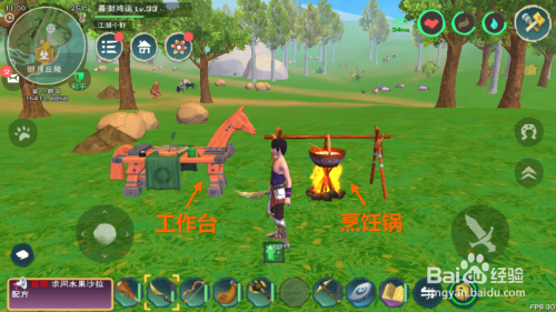 3.建造工作台和烹调锅,放置地面利用。