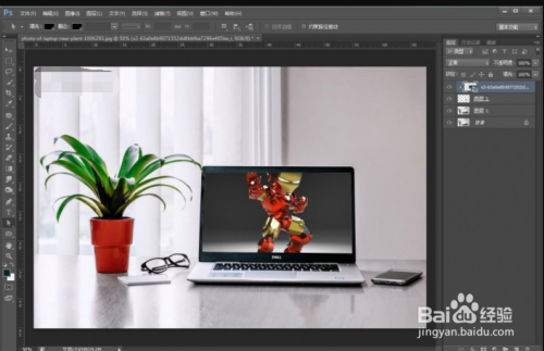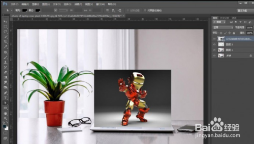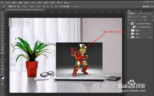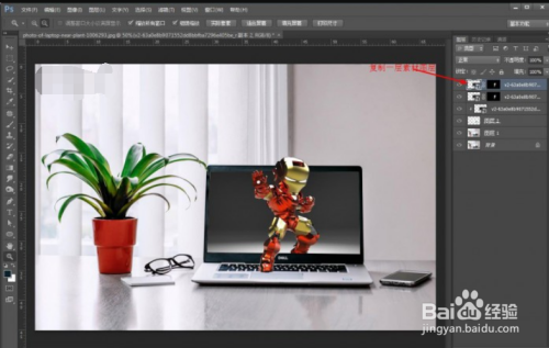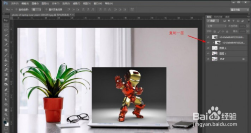 我们可以看到,人物钻出来了,可是为了加倍真实,我们要给它添加一些暗影,所以这里,我们在复制一层素材图层