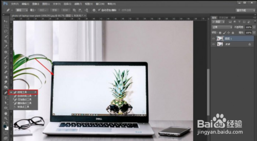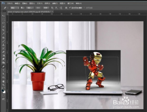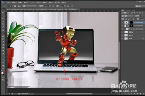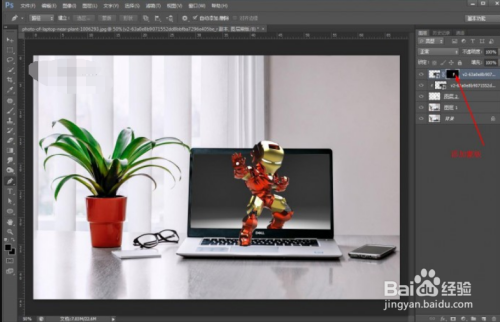 给选区添加一个蒙版,人物就从屏幕里钻出来了