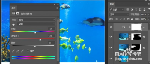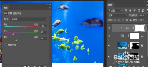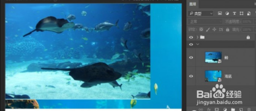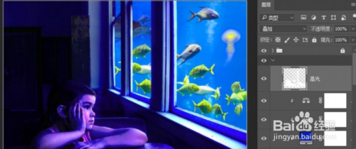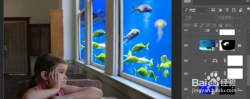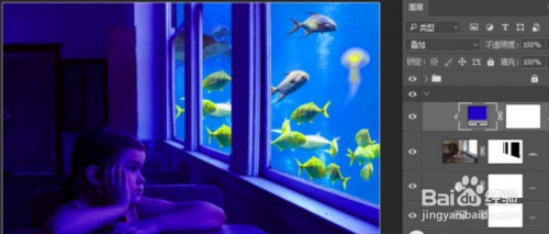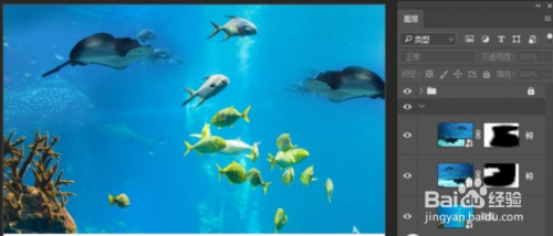 给鲸图层添加一个图层蒙版,把鲸融合在在海底宿世界里面,如图