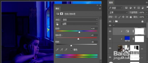 接下来调整一下图片的颜色,添加一个色相/饱和度调整图层,如图
