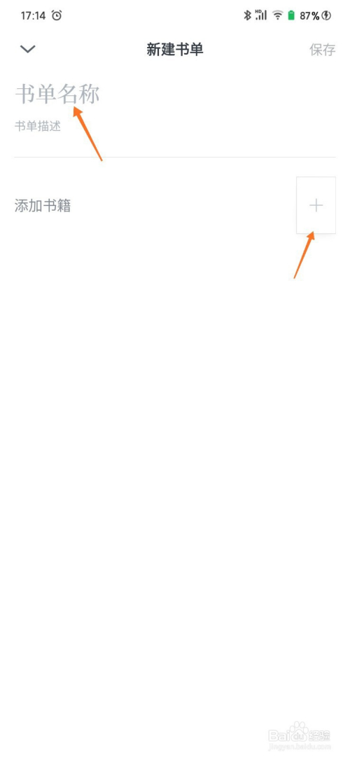 5、输入书单名称,并点击下方的【+】增添相关的书