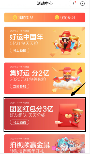 2、在活动中间页面,点击【团聚红包分3亿】。