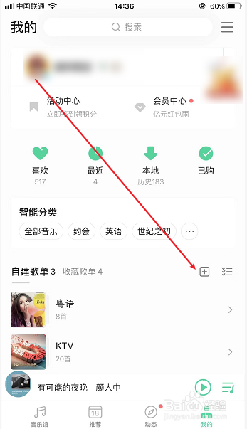 点击“自建歌单”右侧的【+】建立歌单