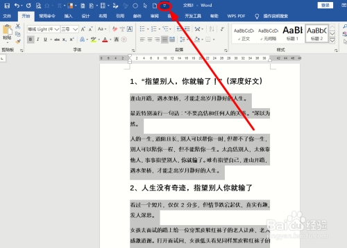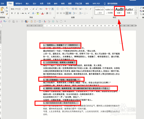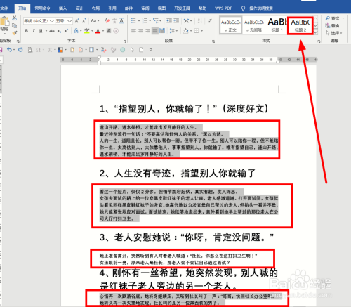 打开Word文档,选中全数题目,单击【起头】选项卡下的【题目1】设置当作题目格局