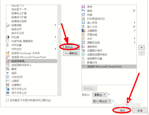 回到编纂窗口,会发现【自界说快速拜候东西栏】中多出了【发送到Microsoft Powerpoint】选项,单击它