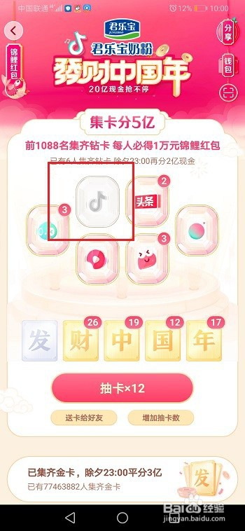 第五步若是其实抽取不到抖音钻卡,可以等几天,会大量放出来的,只是因为前面有1088位万元红包,所以前面很难有抖音卡