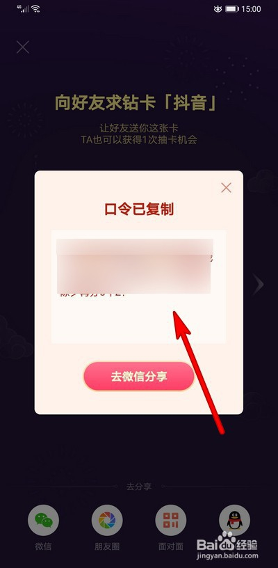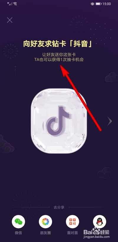 按照提醒分享,然后期待老友送我们,这样就可以获得抖音卡。