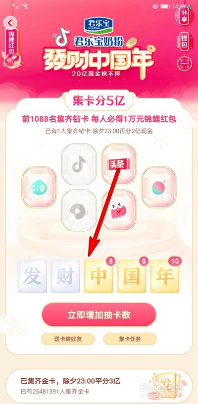 然后去获得抽卡次数来抽金卡,合当作钻卡随机获得抖音卡。