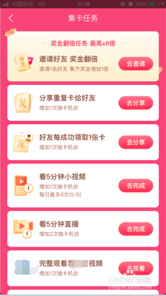 6、在“集卡”使命中继续操作,获取抽奖机遇再返回抽奖。