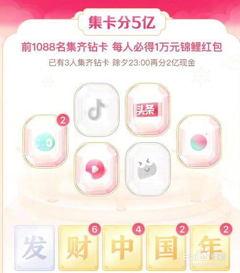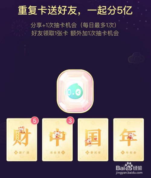 2、每集齐一套发家中国年金卡,汇合当作一个钻石卡。所以我们需要获得更多的“发家中国年卡片”。