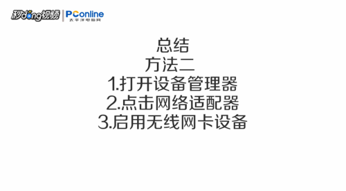- 2方式二右键开始菜单,打开设备办理器,点击收集适配器,右键无线网卡,点击启用设备。