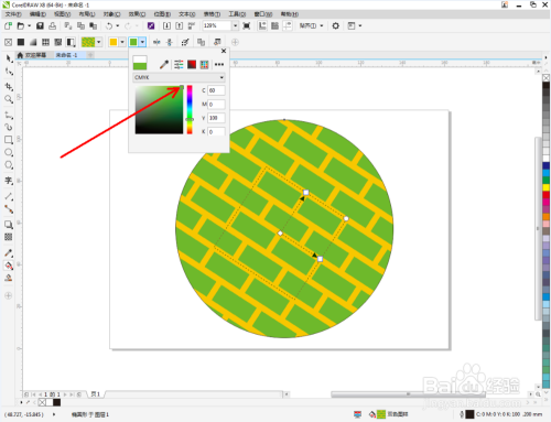点击【编纂填充】,按图示将图案颜色设置为黄色和绿色,这样我们的黄绿墙砖图样填充就建造完当作了。