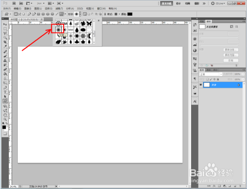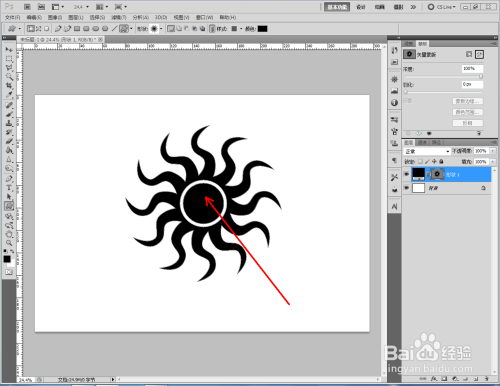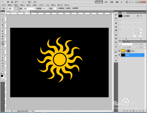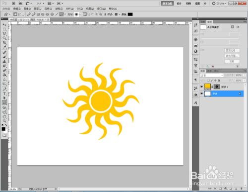 选择外形选项栏中的太阳图案,绘制出太阳图案;