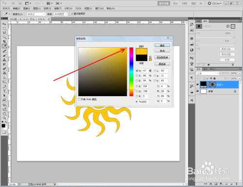 双击太阳图案图层前面的色块,给图案设置分歧的颜色即可。