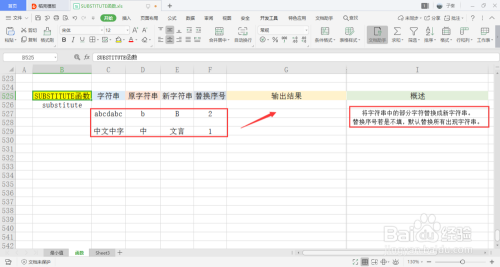 可以看到表中有四列数据,别离是字符串、原字符串、新字符串、替代序号,用于之后的函数操作,还有一句关于此函数的简单概述。